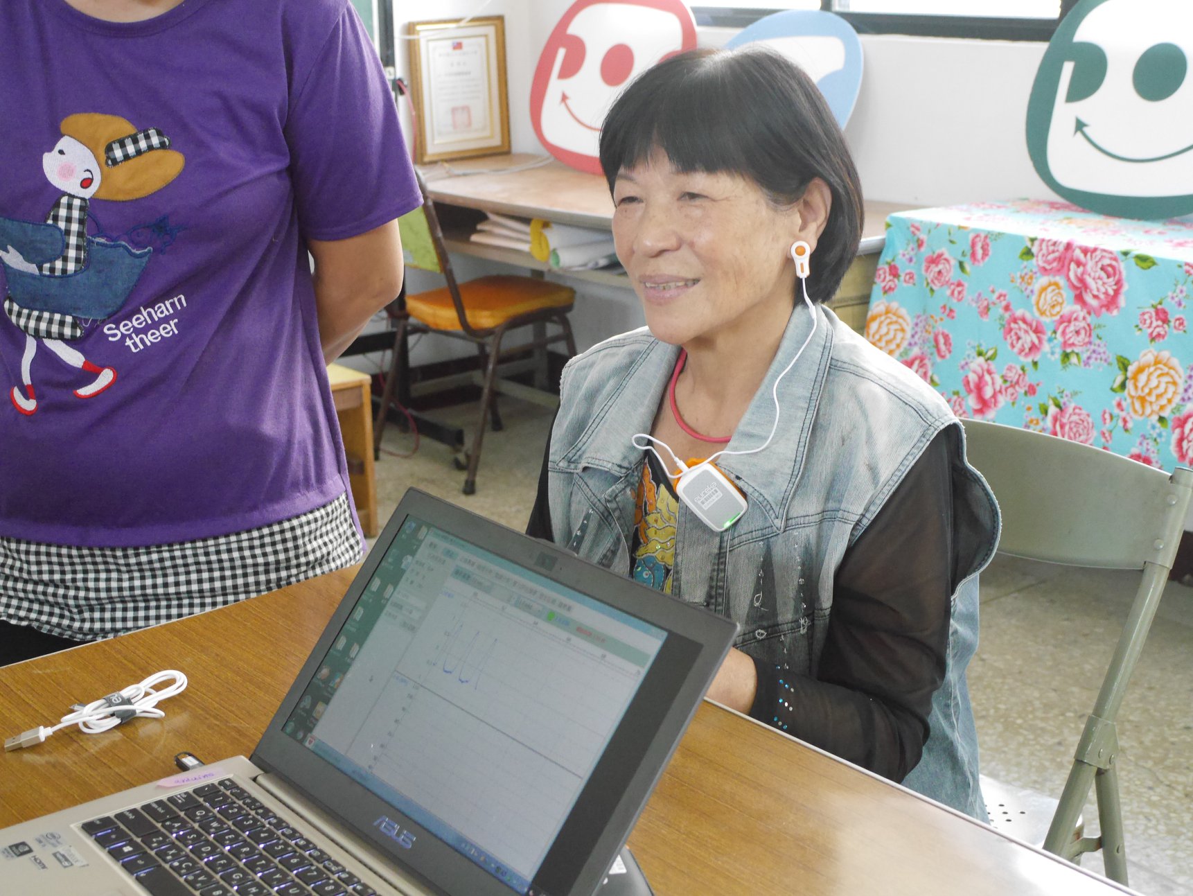 破除完關於熬夜和考試的迷思之後,下午葉教授帶來了研究團隊研發的壓力受測機,現場用電腦儀器測試心跳、脈搏等學員的生理訊號,計算壓力數值,看學員們是否有長期處在一定的壓力下而不察,避免引發憂鬱症。結果現場的實驗結果顯示,關西的樂齡長輩們一個比一個生活得要怡然自得,壓力數值都在低標裡的前段班,反而正值青壯年和小學生的學員,平時背負著課業壓力,數值偏高,這樣的結果讓學員們印象深刻。